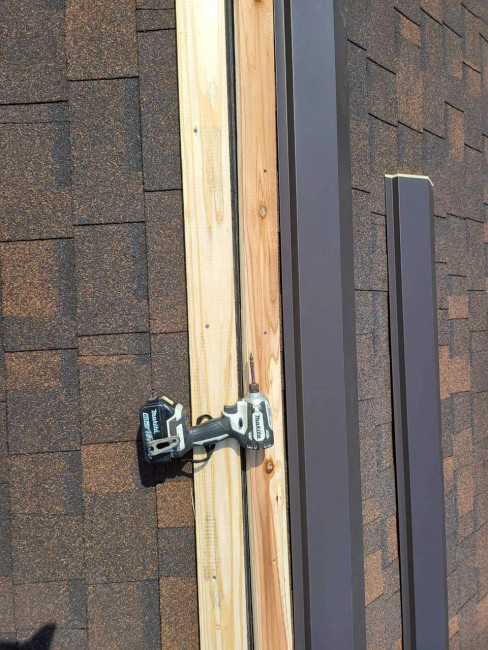 しっかりステンレスのビスで貫板と棟板金を留め、雨漏れ予防をします。